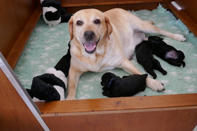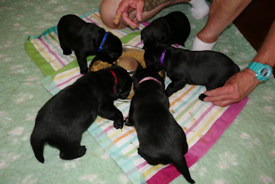Geboren op 6 juli 2017 3 teefjes en 2 reuen.