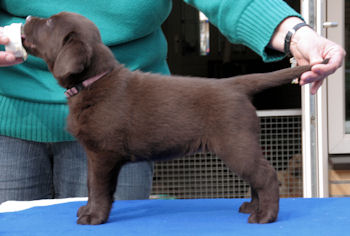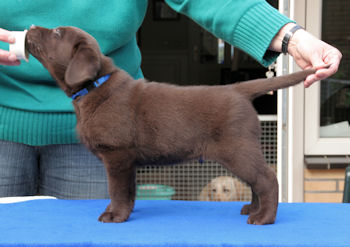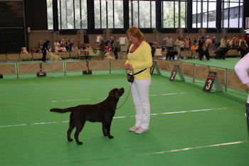 Good size and format, good bone. Nice masculin head. Good eye colour. Typical topline, tailset and carriage. Well developt chest. Korrekt quarters angulations. Typical movement, but a little close behind.