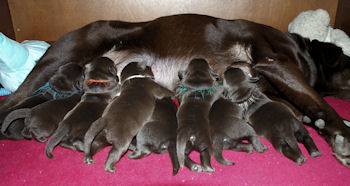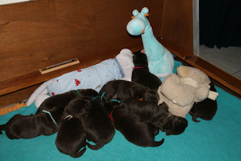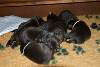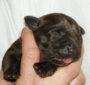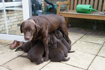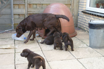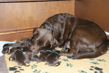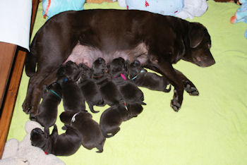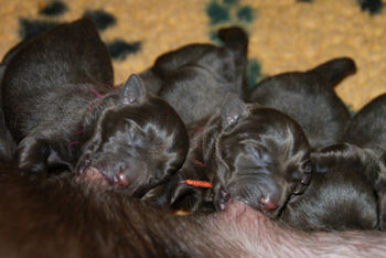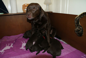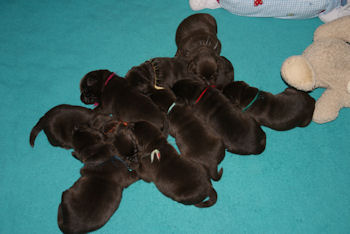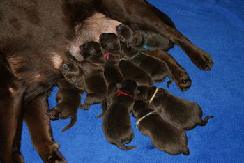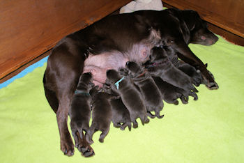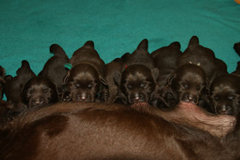Geboren 15 Februari 2009 9 mooie bruine puppen. De bevalling is prima gegaan en moeder en kids maken het uitstekend.