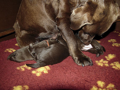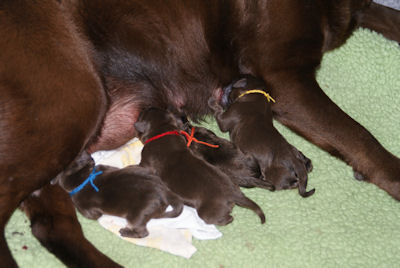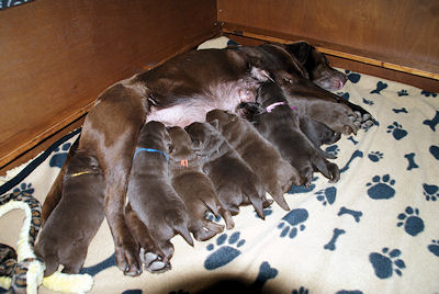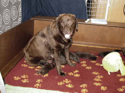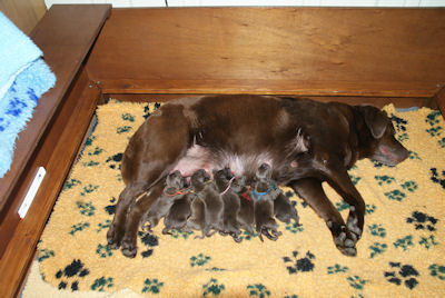 Geboren 5 reuen en 3 teven. De bevalling ging prima en Xena is weer een hele goede moeder.