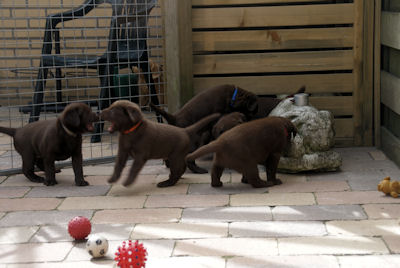 De pups groeien goed en spelen nu meerdere keren buiten als het droog is.