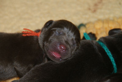 De pups zijn nu 2 weken oud en hun leven bestaat nog steeds uit drinken en slapen. Vandaag zien we de eerste oogjes open.