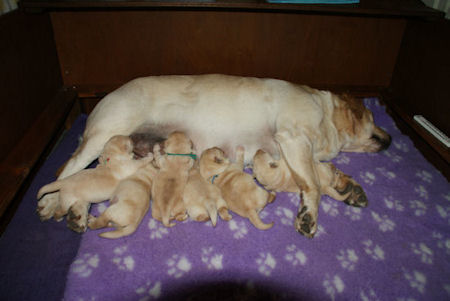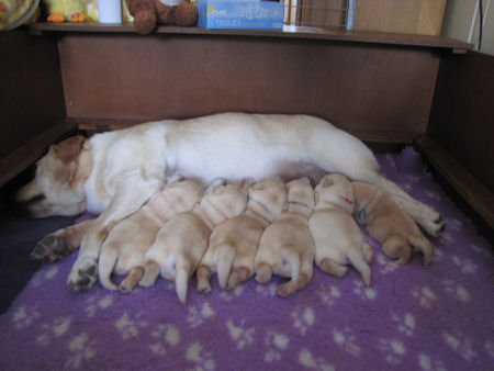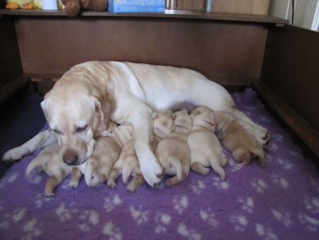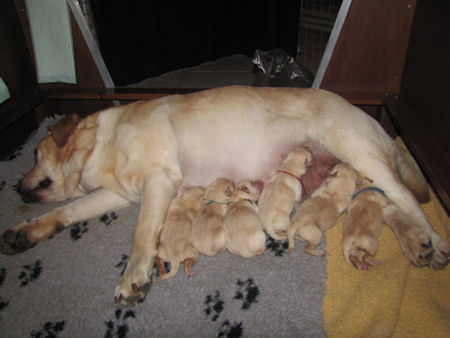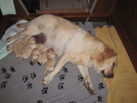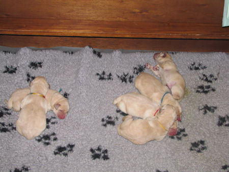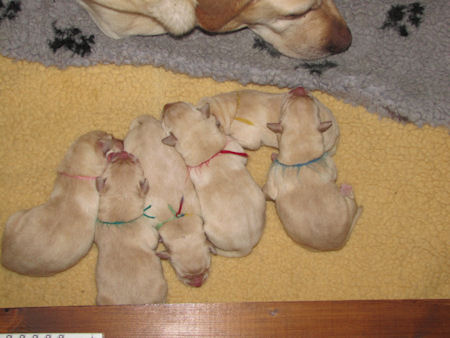 Geboren 23.3.2011 4 teefjes en 2 reutjes. Ze waren tussen de 450 en 500 gram zwaar. Amber heeft het heel goed gedaan het was een vlotte bevalling.