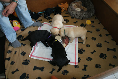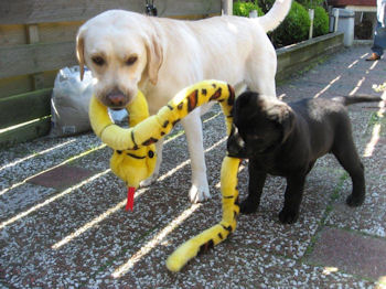 Inmiddels zijn de pups naar hun nieuwe baasjes en ze hebben het daar prima naar hun zin!