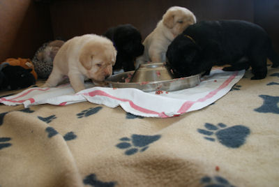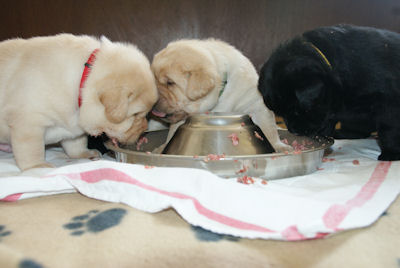 De puppen wegen bijna 3 kilo en krijgen nu vlees bijgevoerd wat met smaak opgaat!