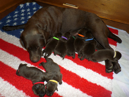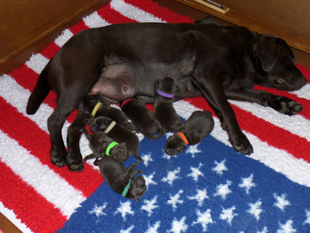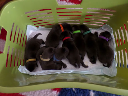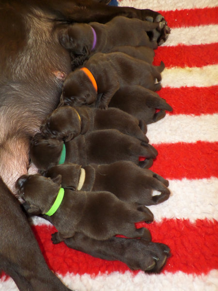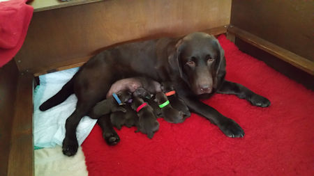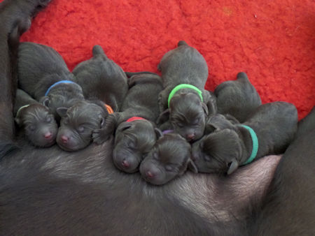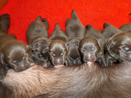 Geboren op 31 Juli 6 reutjes en 2 teefjes. Het was een probleemloze bevalling.