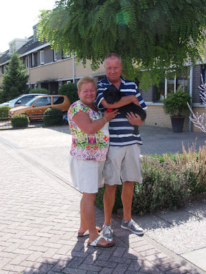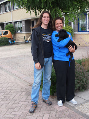 De pups met hun nieuwe baasjes. We wensen Zorro en Tygo en fijn tijd bij hun nieuwe bazen!